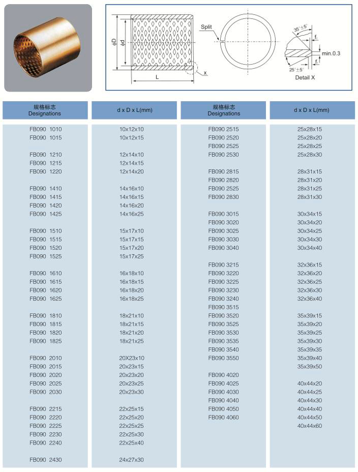 FB090標(biāo)準(zhǔn)襯套尺寸